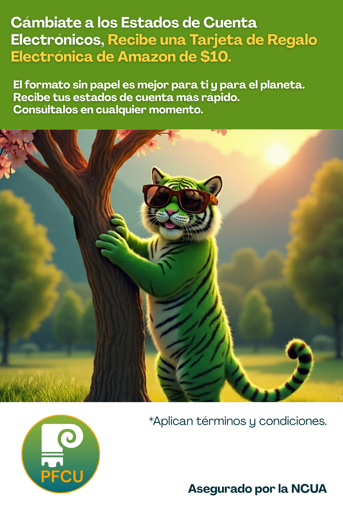 Se requiere membresía en Princeton Federal Credit Union. Promoción válida para miembros que opten por E‑Statements a partir del 16 de marzo de 2026. Esta es una oferta por tiempo limitado y puede finalizar en cualquier momento sin previo aviso. Se requiere una dirección de correo electrónico válida asociada a los estados de cuenta de la cuenta del miembro en PFCU para recibir la tarjeta de regalo electrónica de Amazon. Las recompensas elegibles se emitirán después de 90 días consecutivos de inscripción activa en E‑Statements. Si se cumplen los requisitos de elegibilidad, la tarjeta de regalo electrónica de Amazon se enviará por correo electrónico en o alrededor del día 90 posterior a la inscripción.